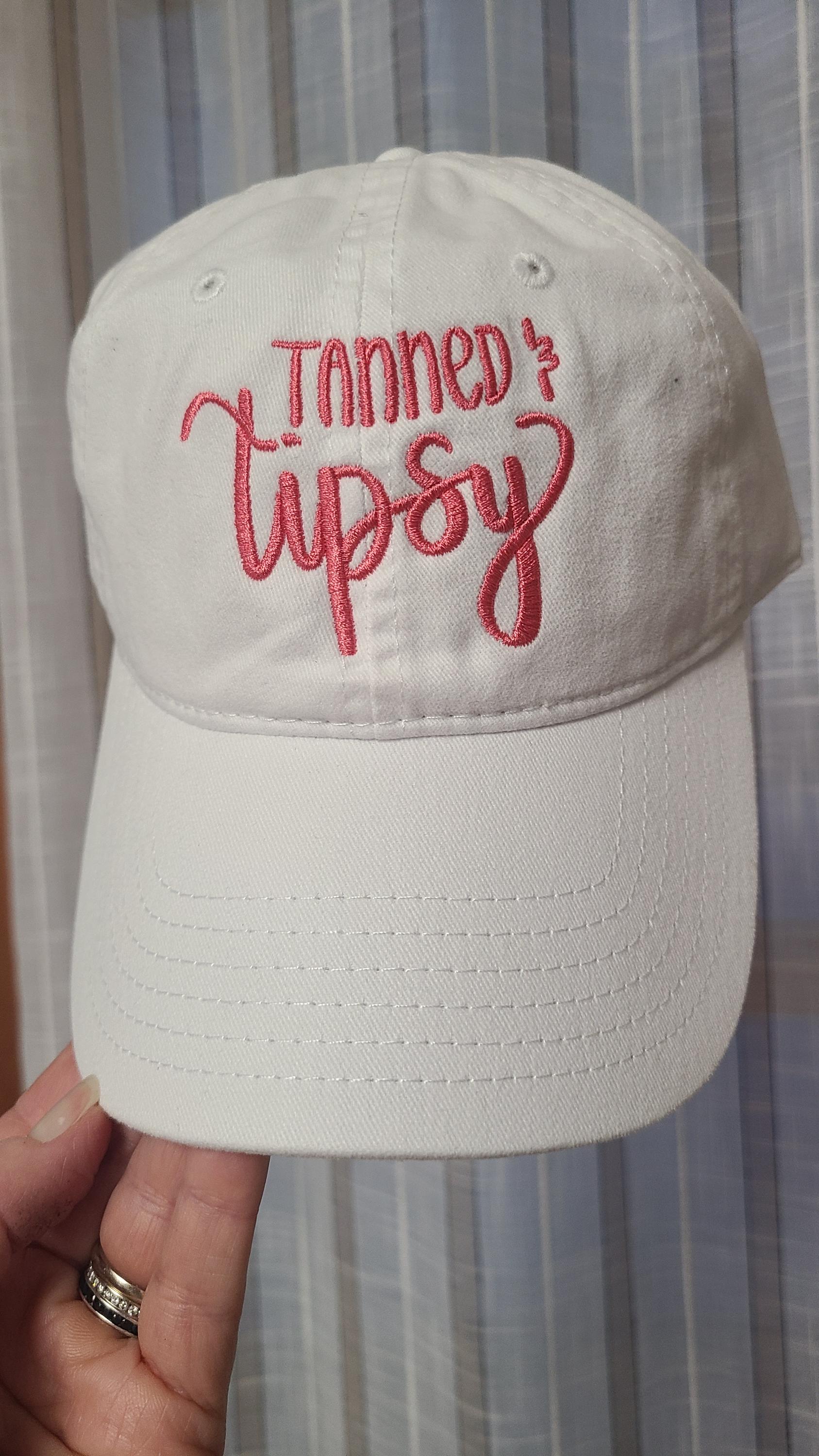 This Tanned and Tipsy embroidered hat is made for beach days, poolside hangs, and unforgettable summer trips.