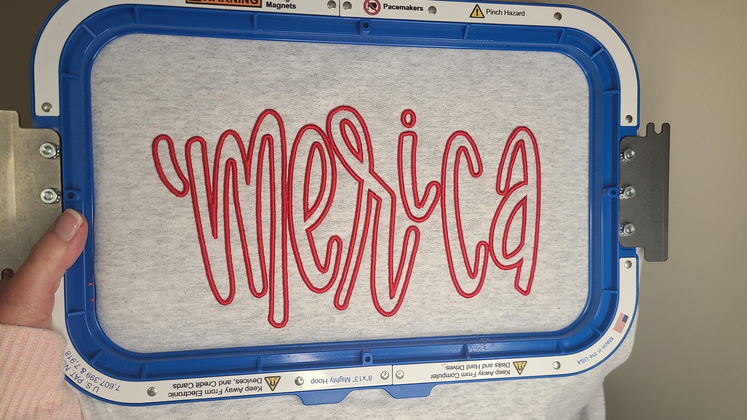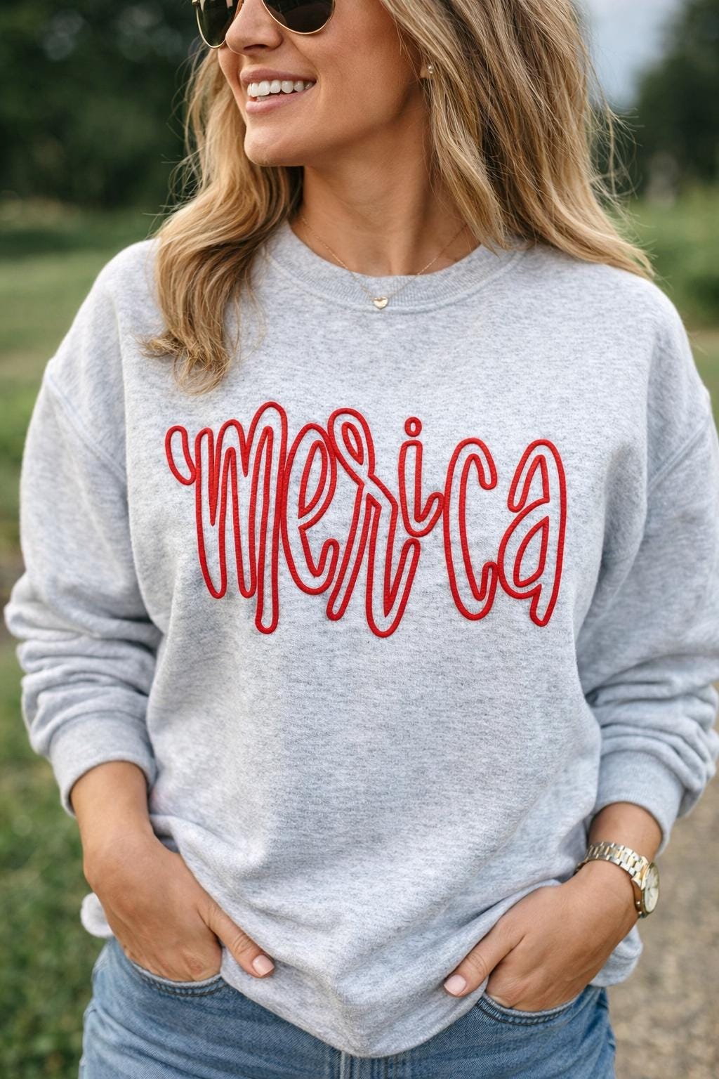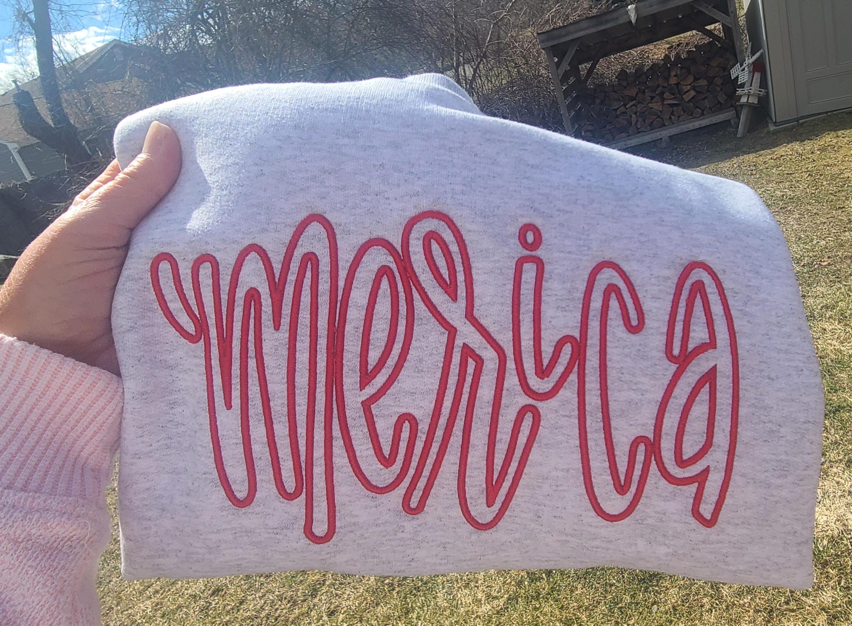 β’ βMerica embroidered in 3D puff embroidery for a raised look