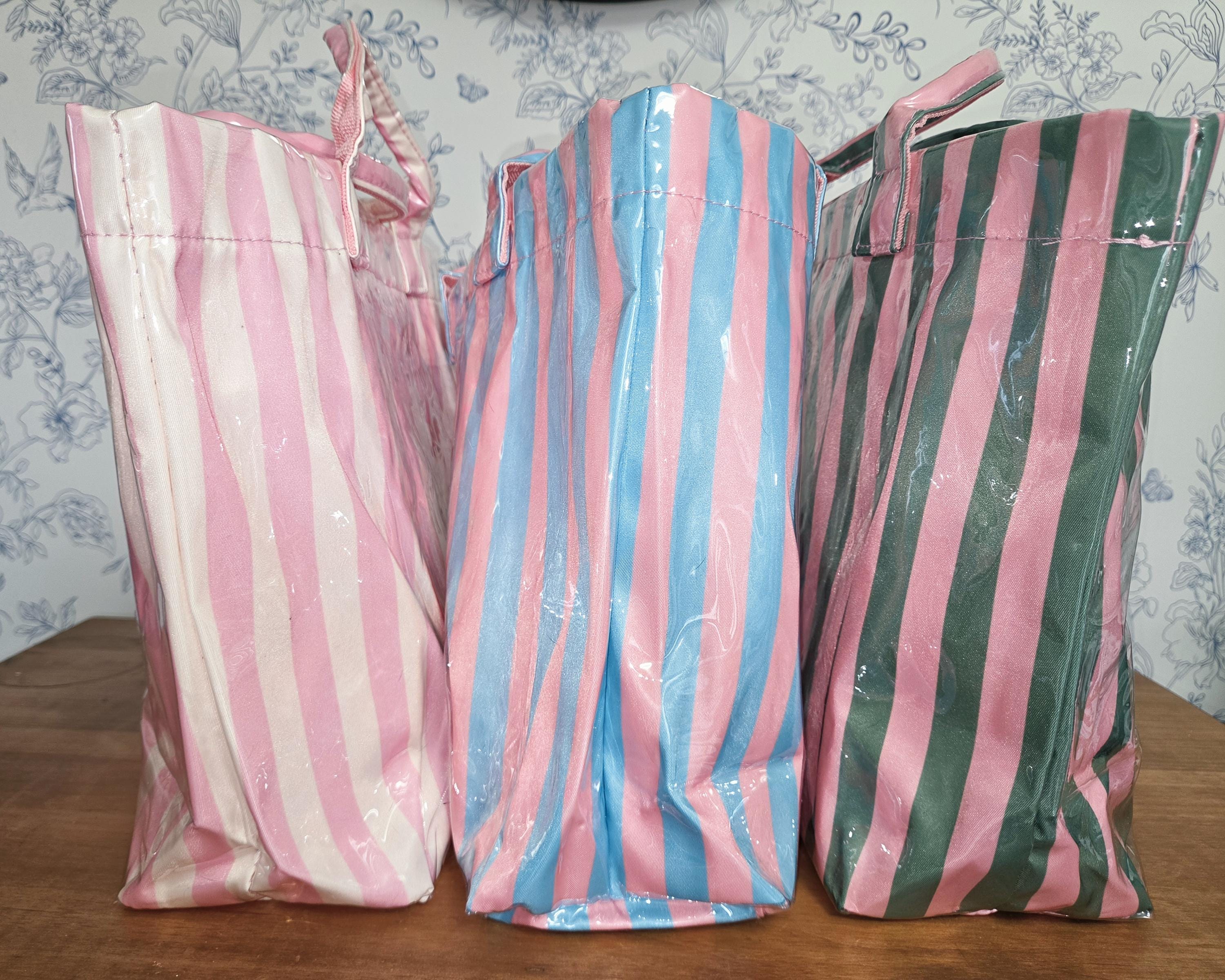 These viral striped vinyl bags are the perfect mix of cute + practical — made to turn heads whether you're poolside, on a boat, or heading to a bachelorette weekend. Personalized with your initials, or a short saying, designed perfectly for you.