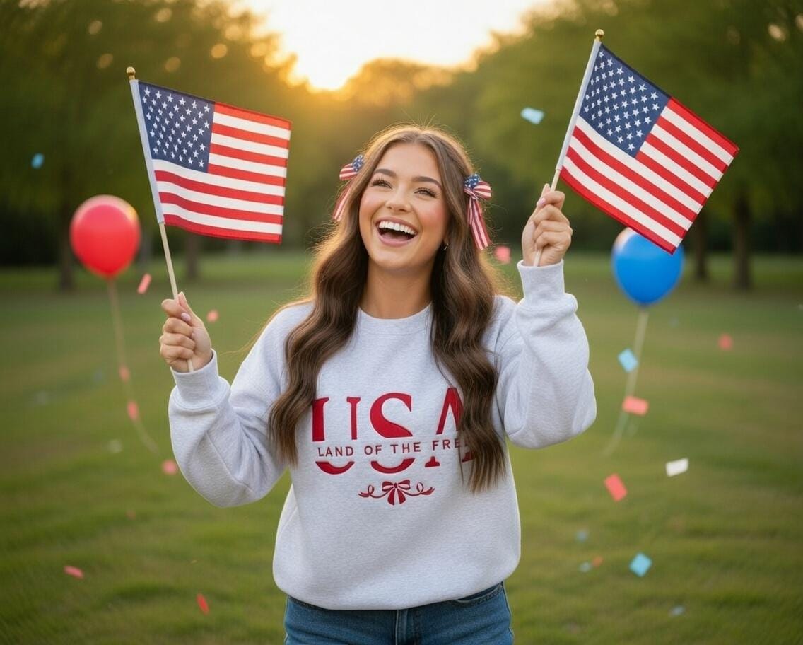 β’ βMerica embroidered in 3D puff embroidery for a raised look