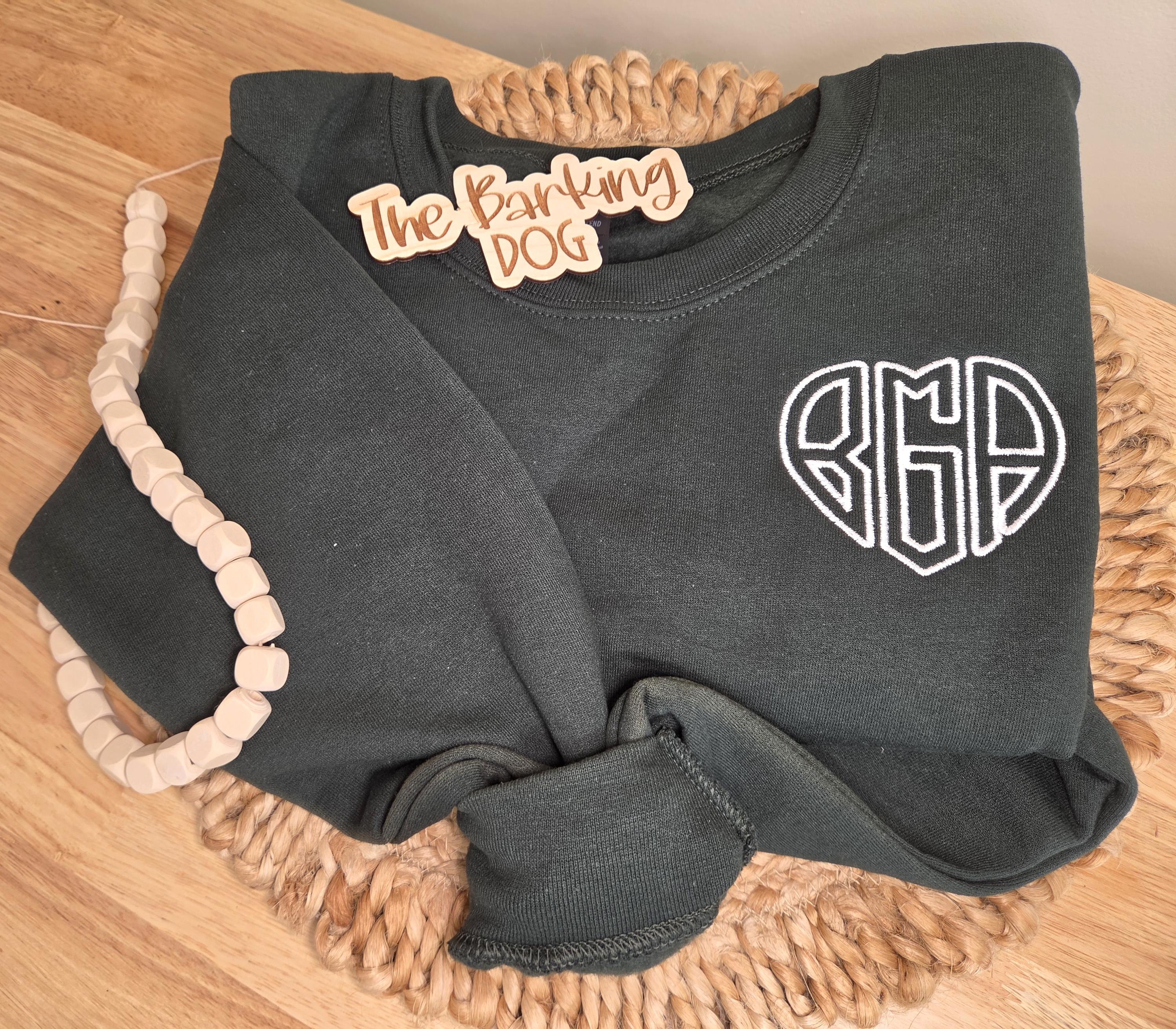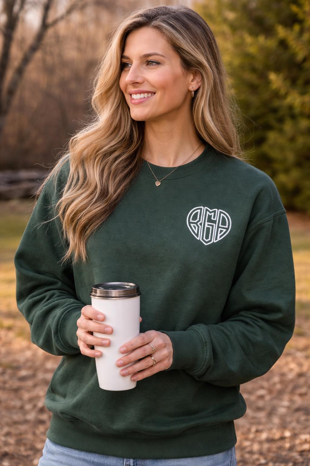 Each sweatshirt is stitched with your chosen monogram in a clean, timeless embroidery style—making it perfect for everyday wear or a thoughtful gift!