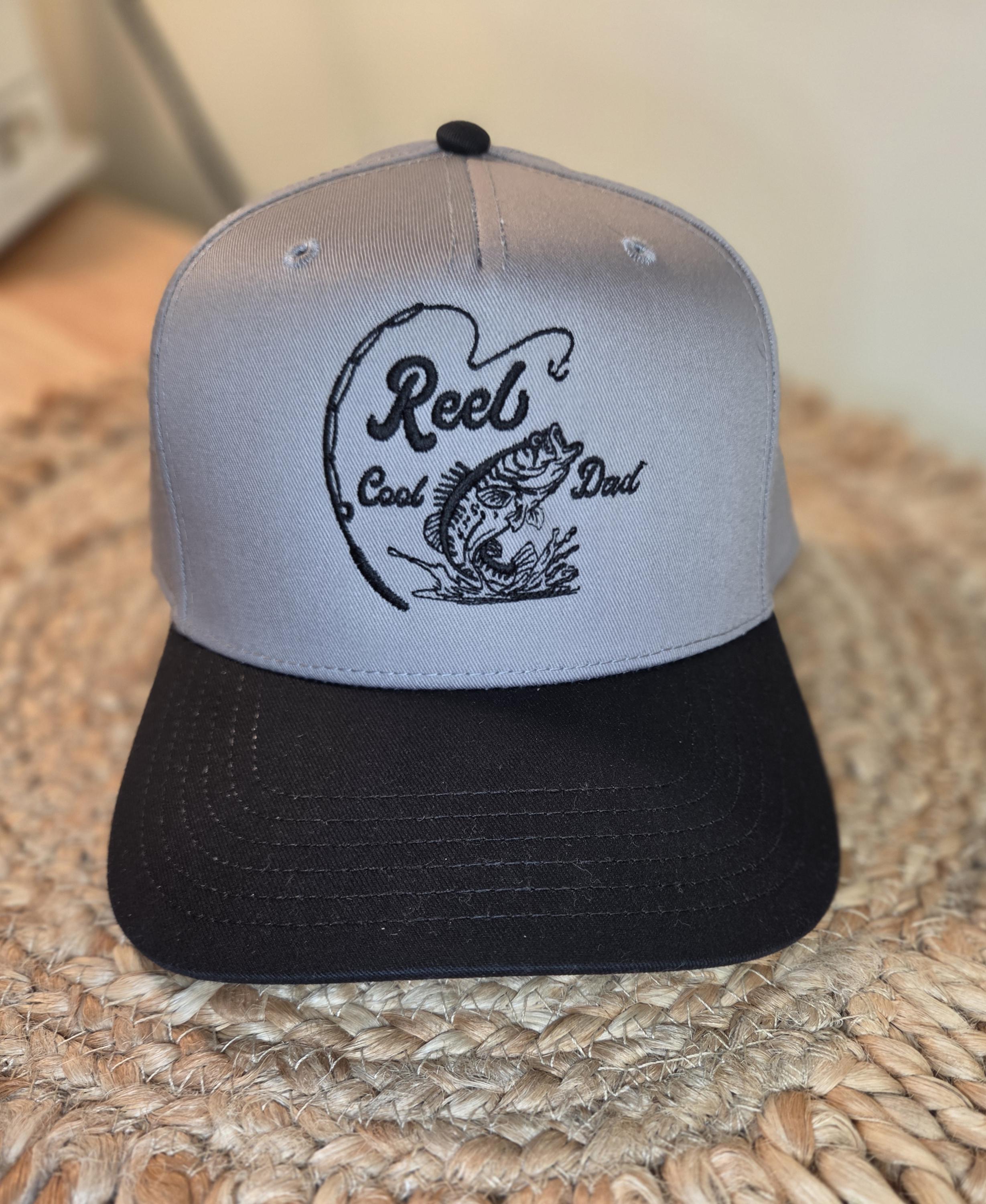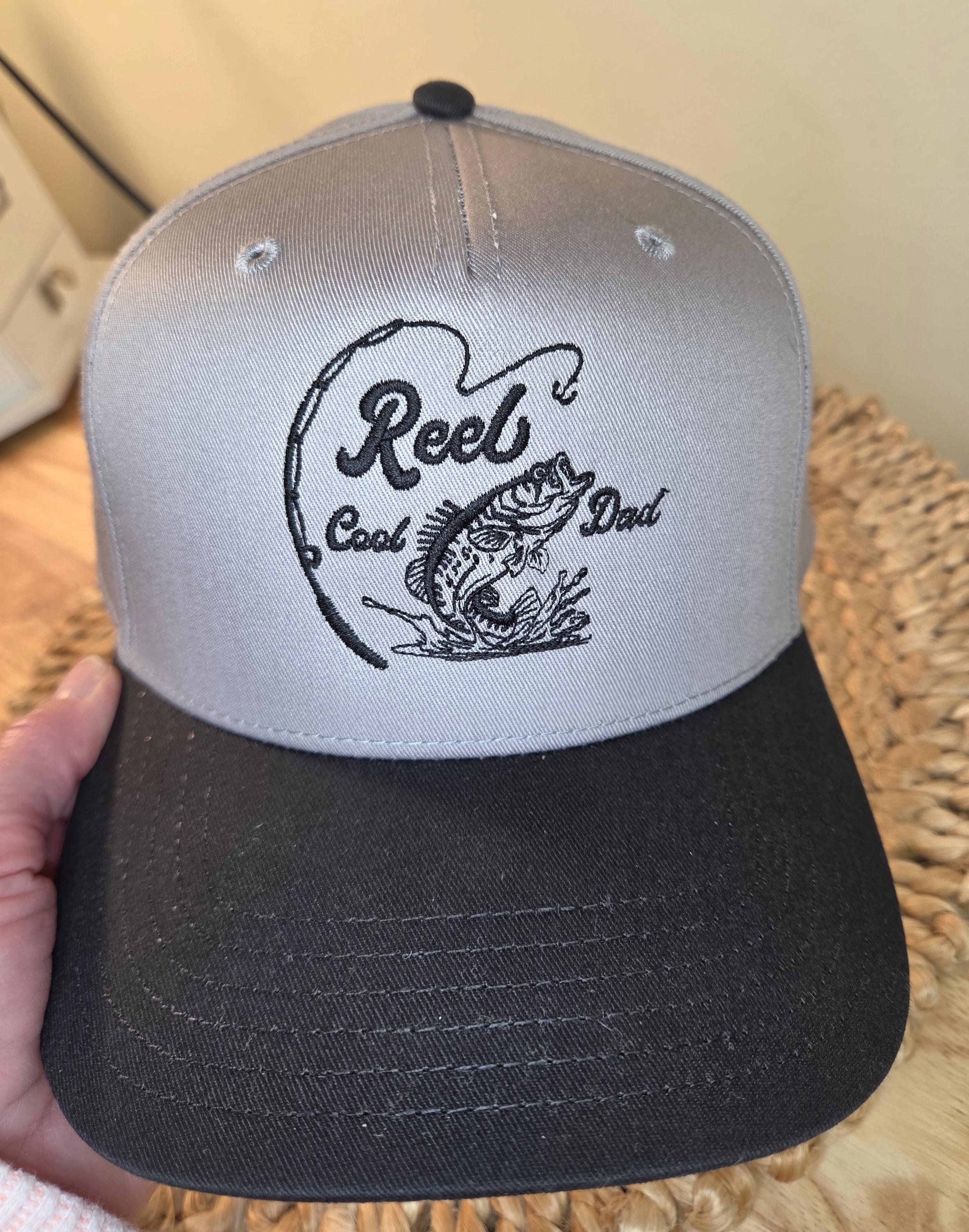 • Premium embroidery: “Reel Dad” + fishing pole & fish design